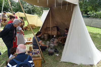 Estivales d'Epona, in Horbourg-Wihr, near Colmar (France). Five historical re-enactment associations (whose list you will find by following the previous link) were present, on the theme of Gallo-Roman life. It was possible to watch some presentations of military maneuvers and equipment, but also objects of everyday life. Examples of jewellery, ceramics and various utensils, recreated on the basis of archaeological finds or ancient representations, were on display, with history enthusiasts on hand to describe them and answer questions. On our side, we even had one or another ancient board game! There were also presentations of weavers' workshops and metalworkers' workshops but, unfortunately, a certain amount of affluence prevented me from going to observe all this. But in the end, it's a good thing, because it means that I wasn't idle!